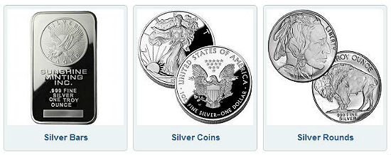 There are three different primary types of silver bullion: bars, rounds, and coins.