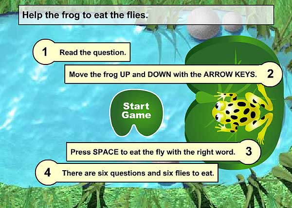 4. Всего появляется 6 слов (и 6 мух), но после трех ошибок игра заканчивается, и лягушка остается голодной!